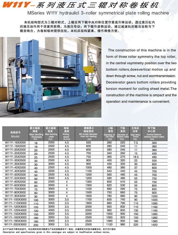 W11Y-液壓式三輥對(duì)稱卷板機(jī)